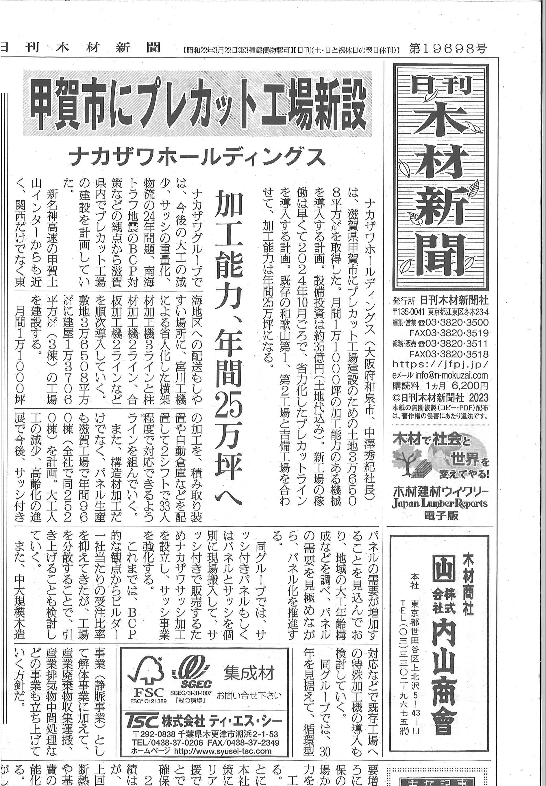 「日刊木材新聞」にナカザワホールディングスが紹介されました